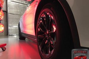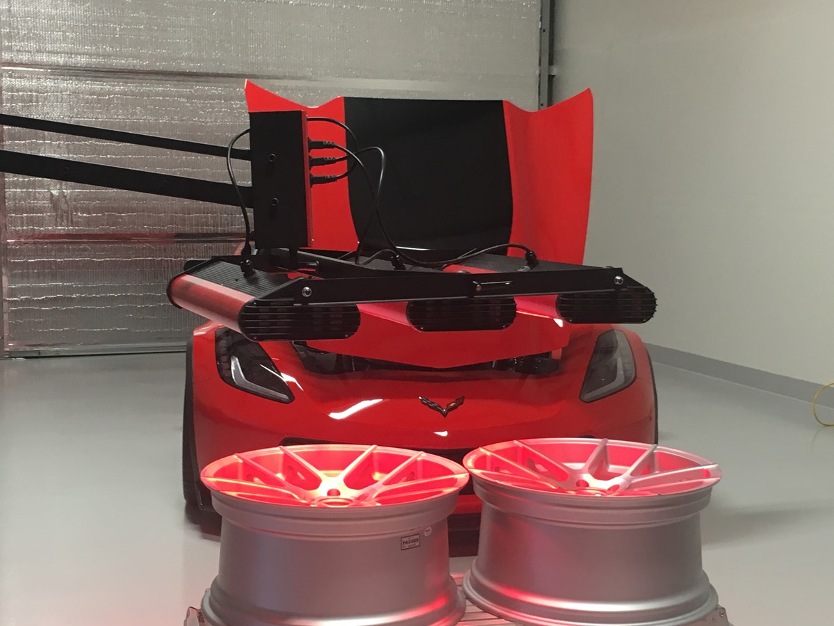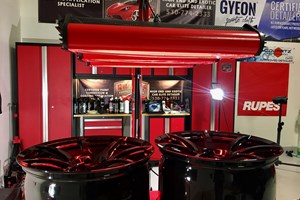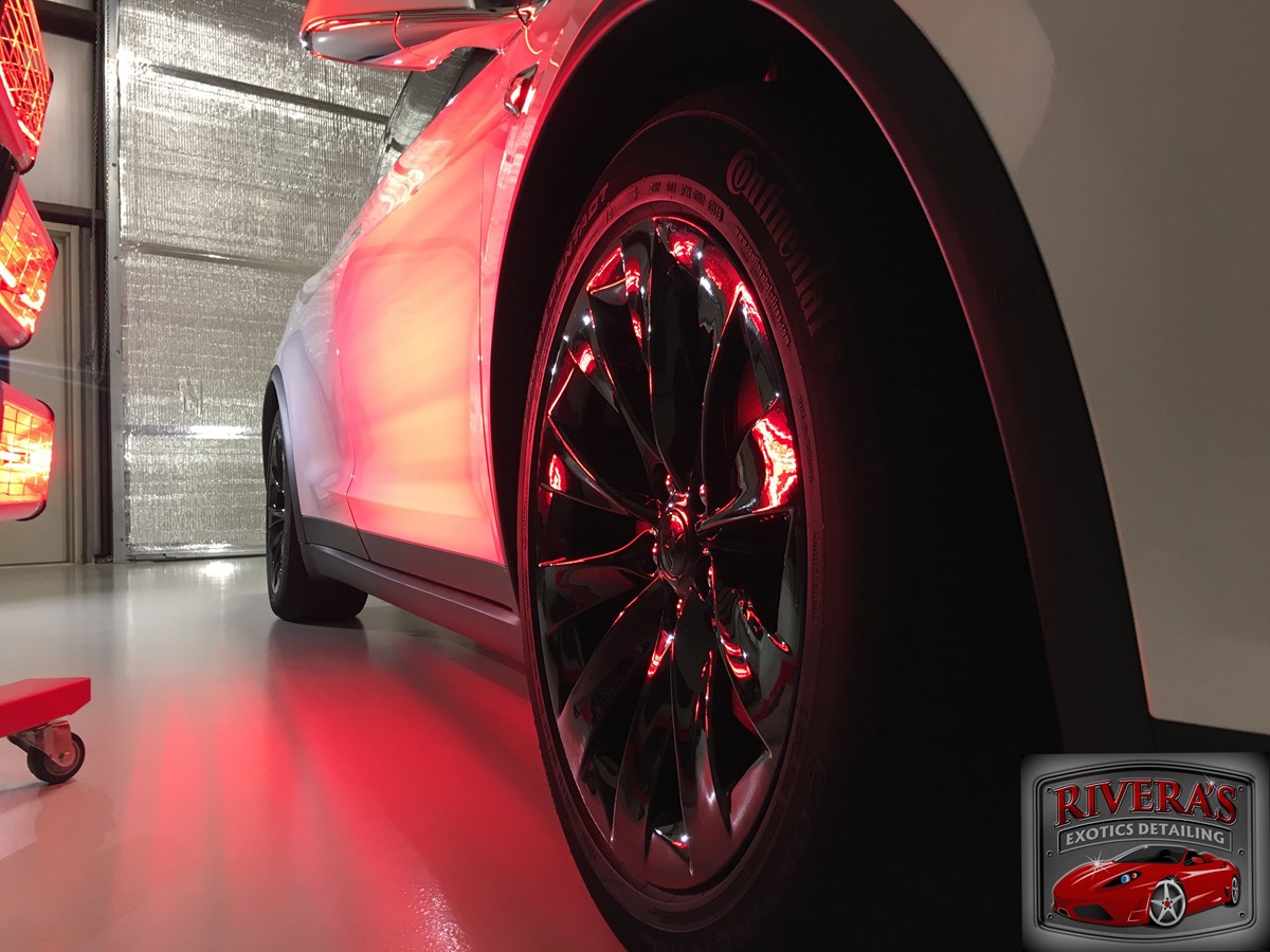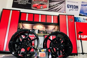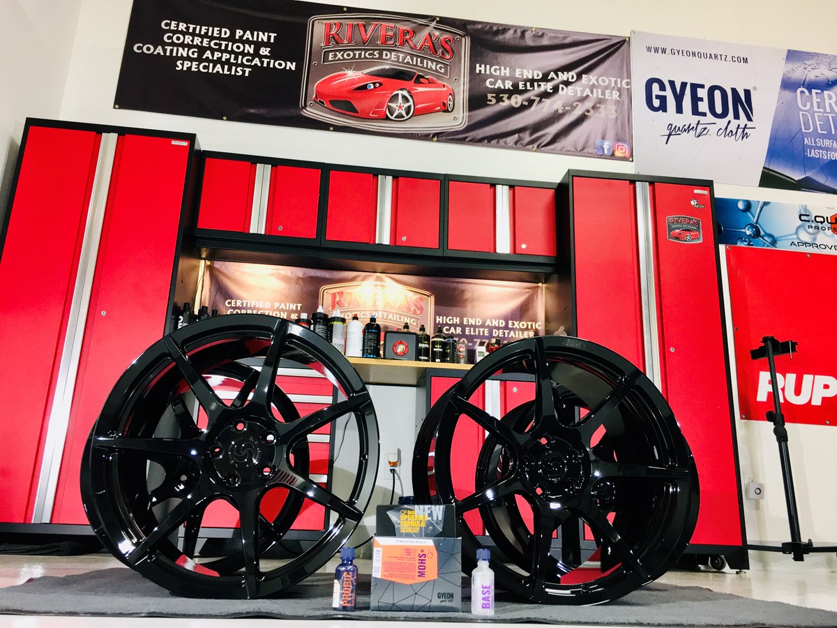 Wheels are pulled off the vehicle, thoroughly cleaned, and then coated from inside out. |